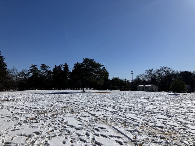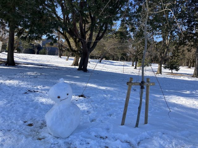昨日の降雪で、園内も7㎝ほど雪が積りました。