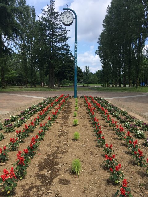 公園では花壇に植え付けたお花が太陽の光をいっぱいに浴びて元気に育っています。