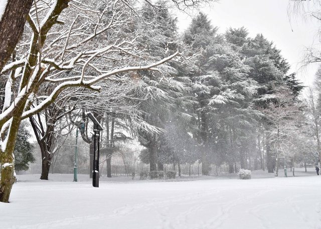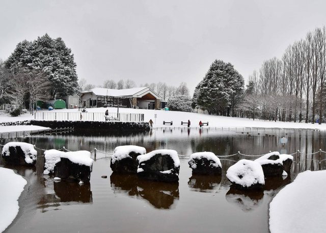 8日は関東各地で雪が降り、公園も雪景色となりました。