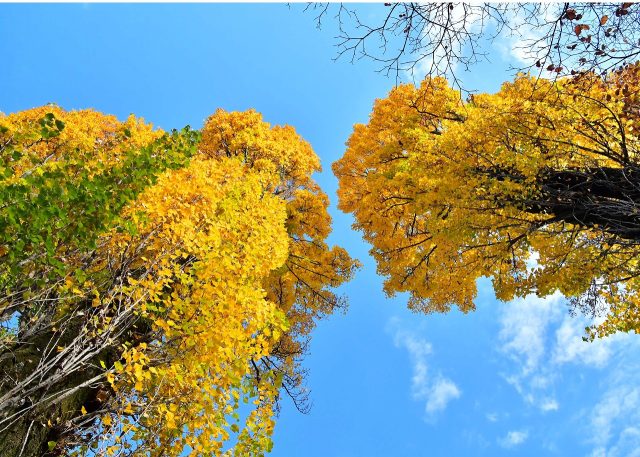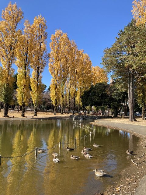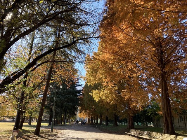 ポプラ、イチョウ、メタセコイアなどの紅葉が見頃を迎えています。