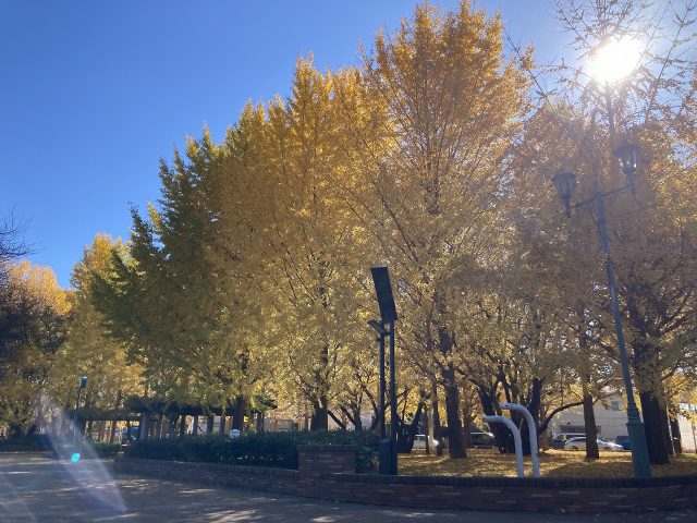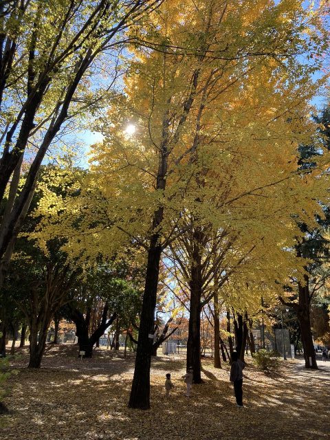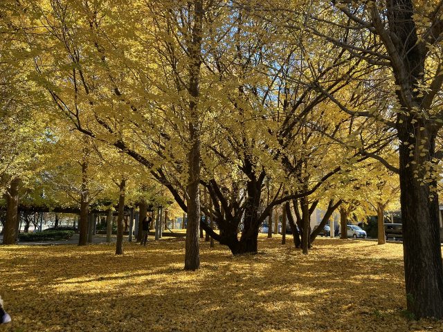 ギンナンの香りと黄色い葉っぱの絨毯