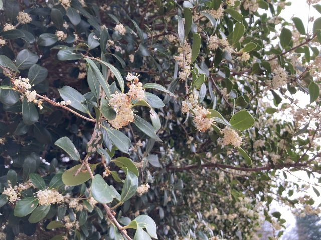 マルバヒイラギが現在、管理センター近くで白い小花を咲かせており、