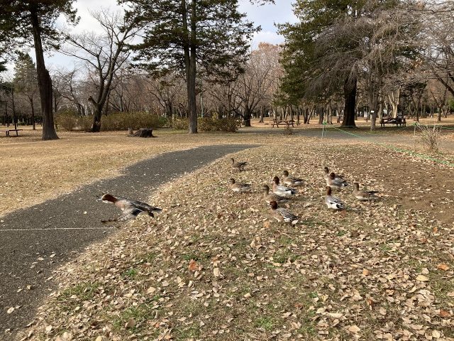 本日はヒドリガモ、マガモ、カルガモなどが見られました。