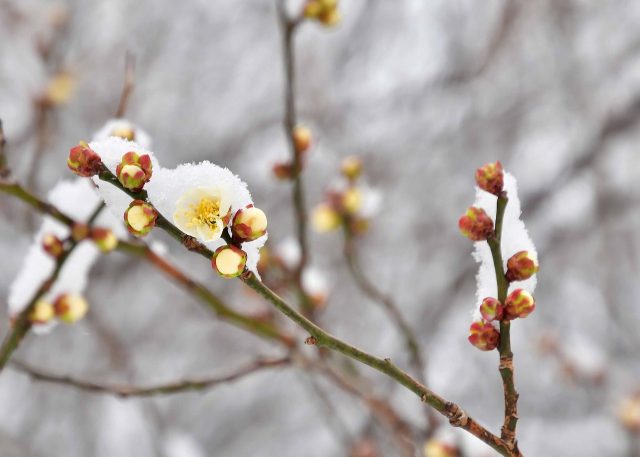 梅の花も雪をかぶって寒そうです。