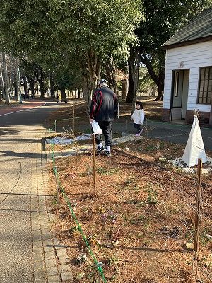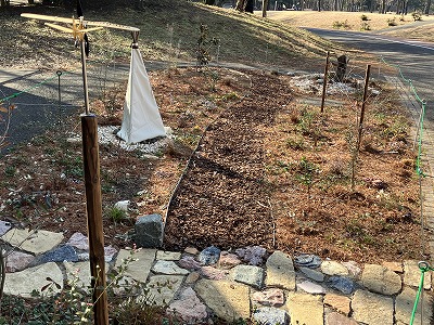 まだまだ氷点下になる日もあるため、落ち葉で保温をしております。