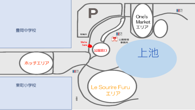 - 公園駐車場、隣接する豊岡中学校駐車場
