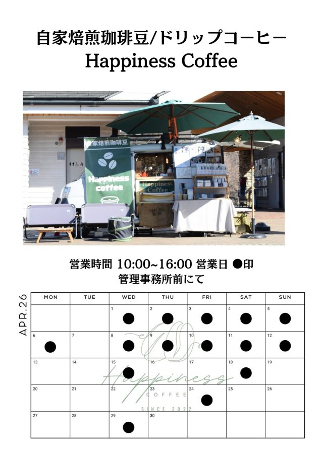 4月出店お知らせ ドリップコーヒーとコーヒー豆の販売