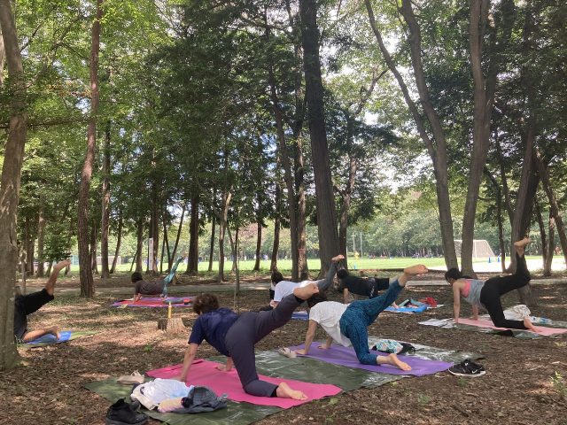 お部屋の中ではヨガマットだけでなく椅子も併用して、様々な動きが可能になります。