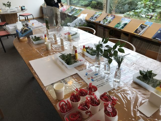 材料は松ぼっくりなど和光樹林公園内で取れる植物がメインです。