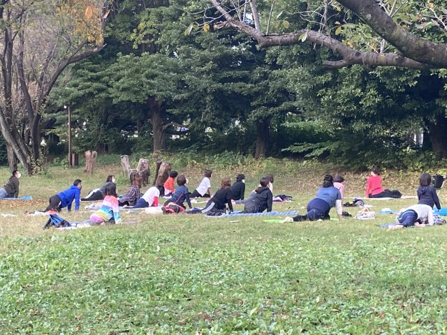秋に、講師の髙橋香織先生をお招きしてパークヨガを開催しました。