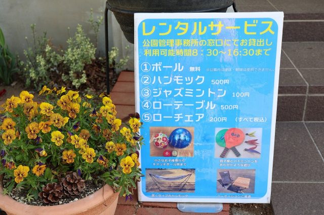 公園管理事務所の窓口にてレンタルサービスを行っています。