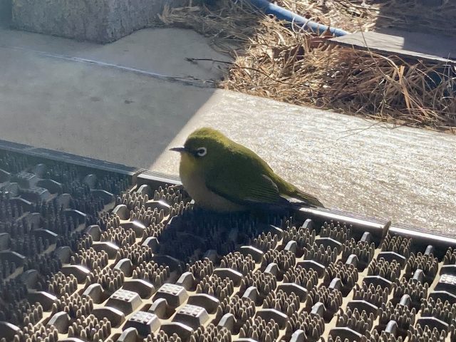 体の色と目の周りの色、ふさふさの毛がかわいらしいメジロです。