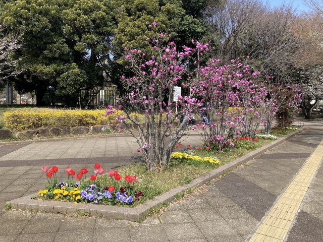 暖かい日も増え、和光樹林公園が少しずつ彩り豊かになっています。